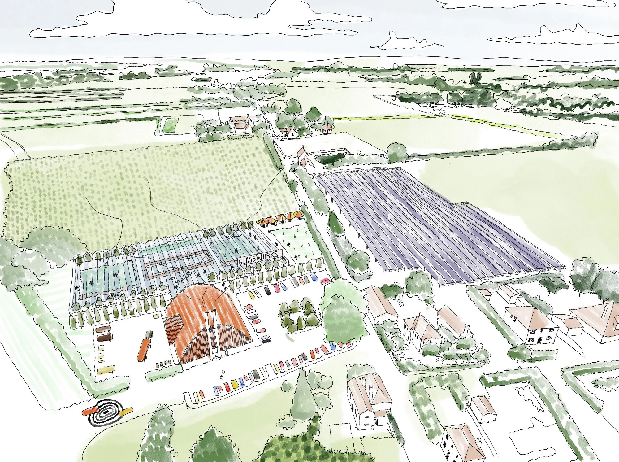 The above is a commission for Climpsons’ coffee to imagine a new world of coffee in a series of abandoned glasshouses in east Kent. The projects has a fully welded arched roastery as the gateway to landscape of retail, coffee and relaxation under a saw-toothed glass roofscape.
