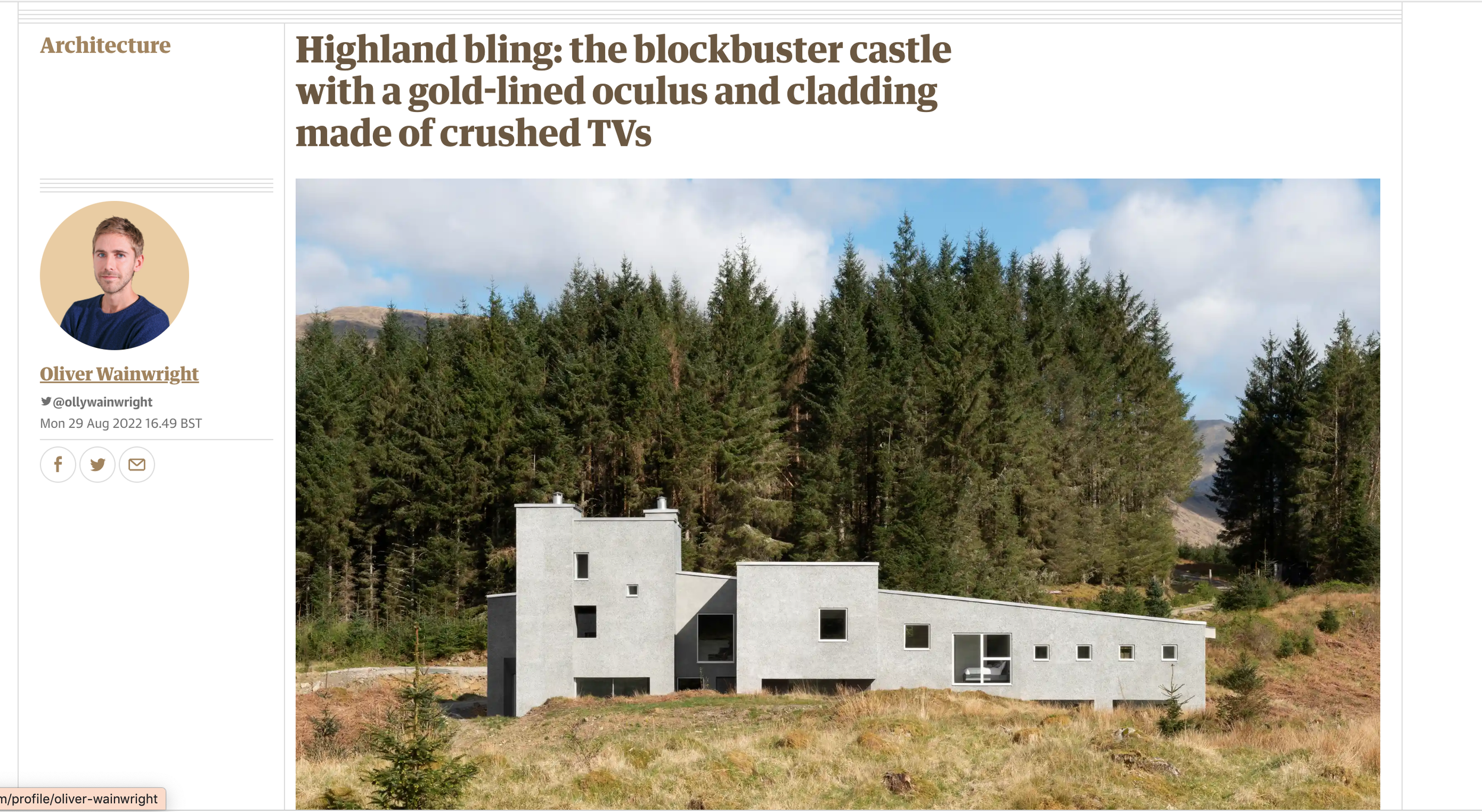 After a great trip to visit the House at Ardteatle with Olly Wainwright and a few other journalists, the House at Loch Awe has begun to appear in the press including Olly’s feature in Guardian. Jolly good it is too.