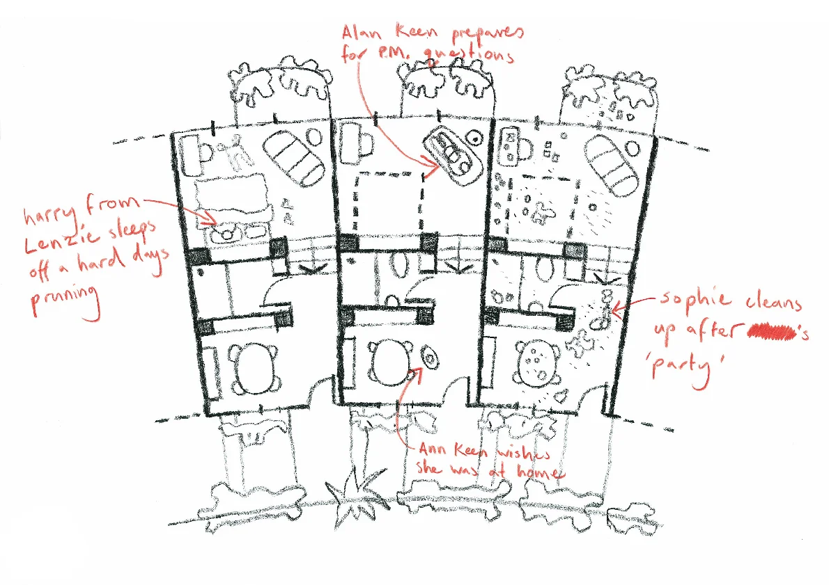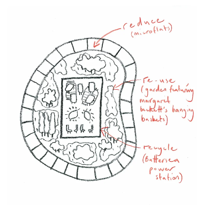 During the MP's expenses scandal, Denizen Works proposed re-purposing Battersea Power Station as a complex for MP's second homes and homeless housing shelter. The Power Station itself functioned as a meeting and dining hall wrapped in a garden and ring of studio flats.