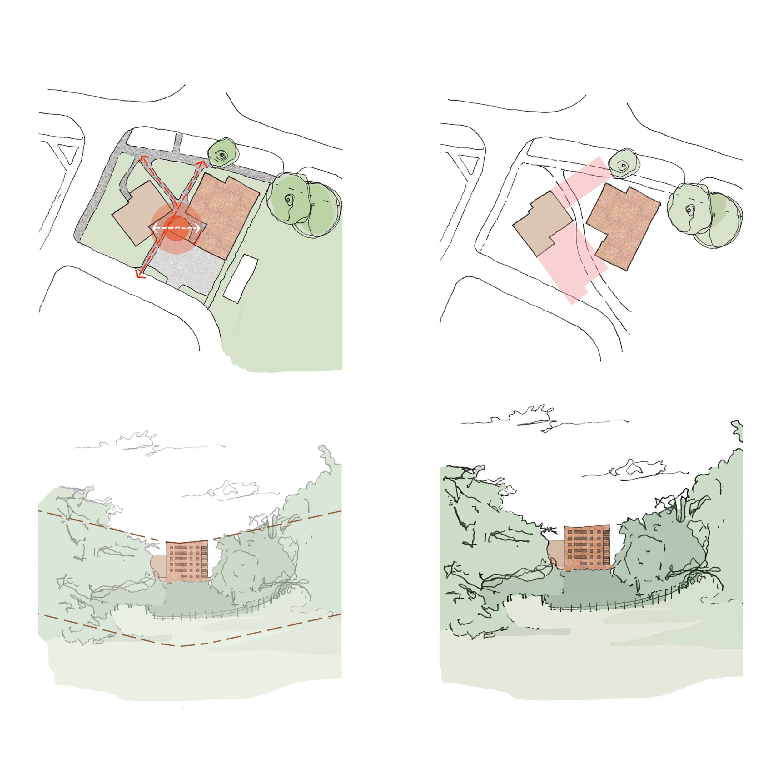 The relationship between the existing building to the west and the Vale to the east has been the primary consideration throughout the development of this scheme. The building must be sympathetic to the existing views and amenities of the current occupiers.