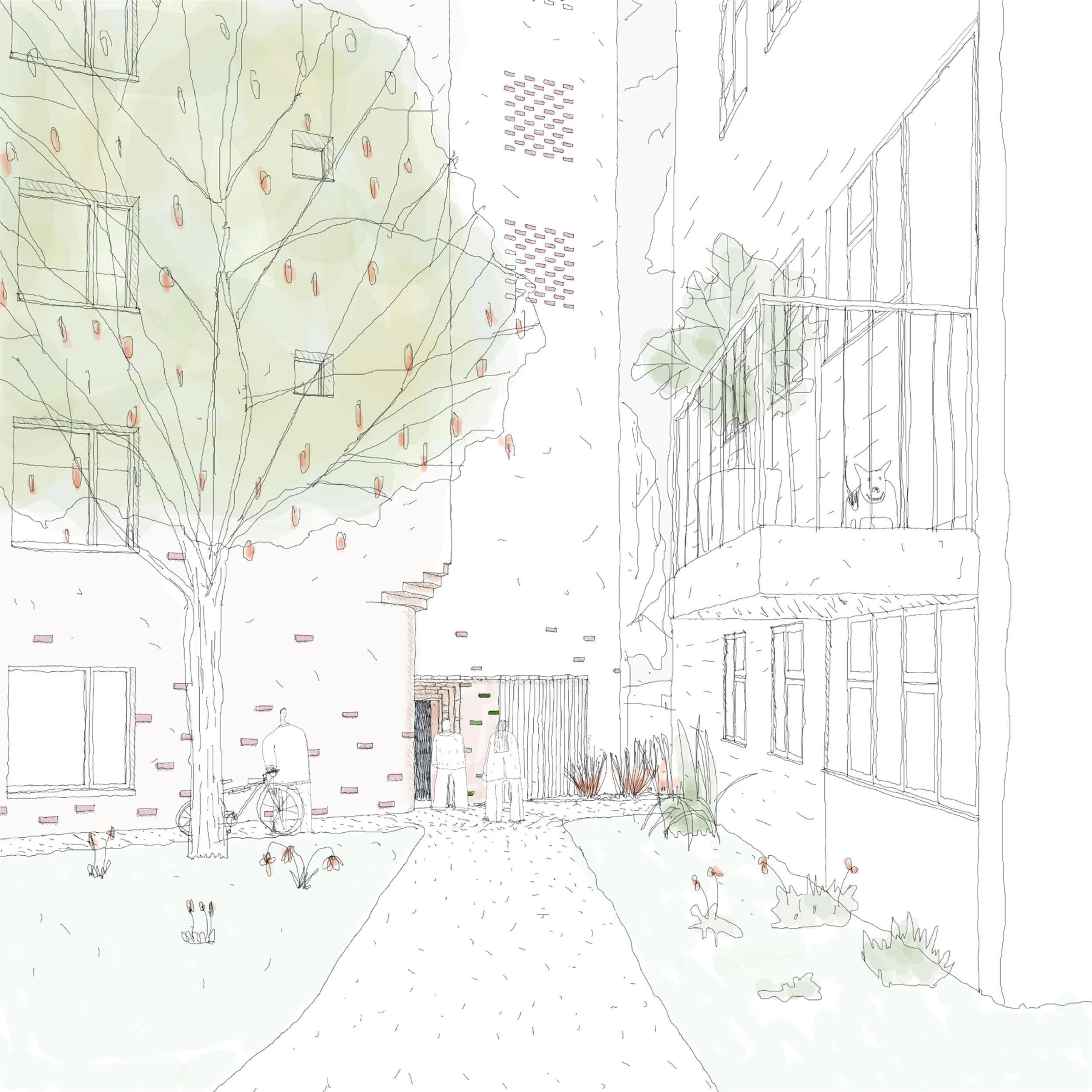 The site at Gascoigne Road sits at a junction with King Henry’s Drive, currently occupied by a five-storey block of flats. Our proposal includes 23 new apartments in a six-storey block, which is placed so that it does not block views out to Addington Vale for the existing inhabitants.